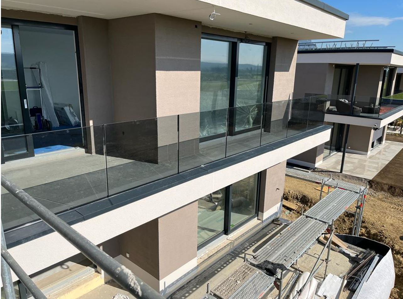 Glasgeländer in Kombination mit Holz