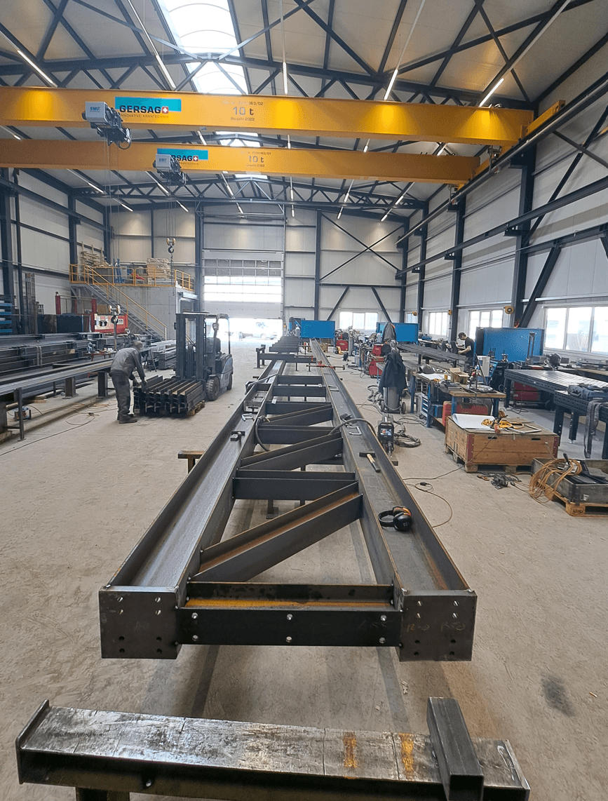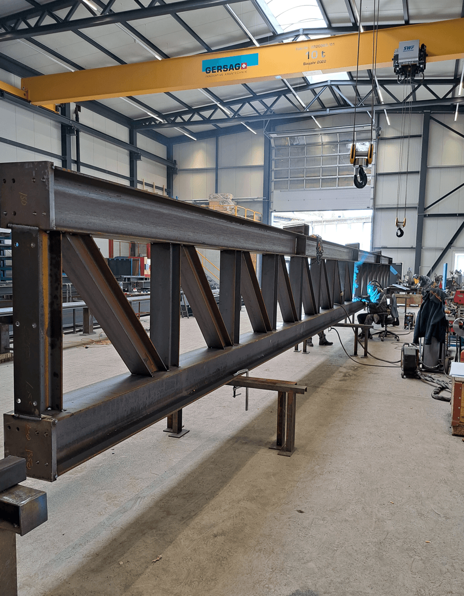 Für den Bau einer 80 Meter langen und 27 Meter breiten Stahlhalle werden spezielle Fachwerkträger eingesetzt. Diese bieten Stabilität und ermöglichen grosse Spannweiten. Die Halle eignet sich ideal als Lager- oder Produktionsfläche und zeichnet sich durch eine effiziente und robuste Konstruktion aus.