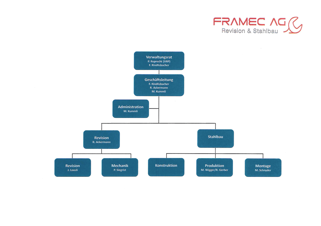 Als kleines Familienunternehmen ist die 1982 gegründete Framec AG stetig gewachsen. Wir stehen für Kompetenz im Bereich Stahl- und Metallbau sowie Revisionen und Instandhaltungen. Mit unserem Team aus Zeichnern, Konstrukteuren, Metallbauern, Stahlbauschlossern und Montagefachleuten können wir Ihnen heute ein umfassendes Leistungsspektrum anbieten. Gemeinsam erarbeiten, gestalten und verwirklichen wir Ihr individuelles Projekt. Für uns sind Begegnungen auf Augenhöhe und der gegenseitige Respekt ein wichtiges Gut. Wir pflegen den Kontakt zu unserer Kundschaft auch nach einem abgeschlossenen Projekt weiter, denn langjährige Kundenbeziehungen sind uns sehr wichtig. Die Framec AG strebt nach Kontinuität und langfristigem Wachstum. Unser Handeln ist darauf ausgerichtet, auch noch in einigen Jahren als flexible und selbständige Firma am Markt präsent zu sein.